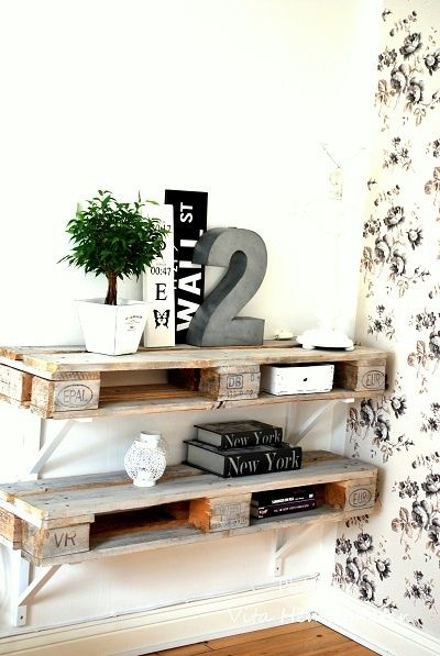 Il vous faudra une palette, une scie circulaire, des équerres et des chevilles qui correspondent à votre type de mur
