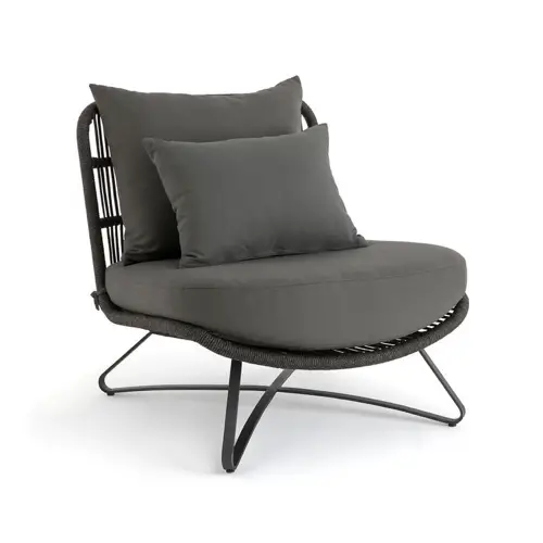 - Fauteuil de jardin en résine imitation rotin, métal noir et coussins écrus - Maisons du Monde
