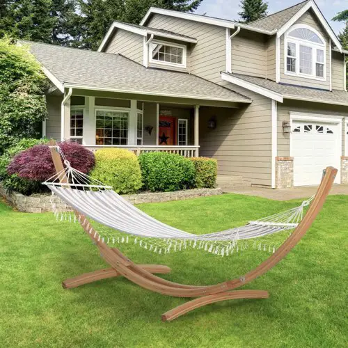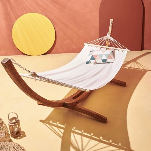 Si vous n'avez pas la possibilité de suspendre un hamac entre deux arbres ou deux poteaux, il existe des hamacs avec une structure auto-portante. La plupart des hamacs avec une armature auto-portante sont en bois ou en métal.