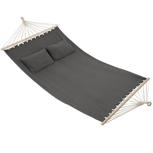 Largeur : Plus le hamac est large, plus il est confortable. Pour une personne seule, une largeur de 140 à 160 cm est suffisante, mais pour plus de confort ou pour deux personnes, optez pour un hamac de 180 à 200 cm de large. Longueur : Bien que la longueur soit moins déterminante, elle doit être suffisante pour s'allonger confortablement. La plupart des hamacs mesurent plus de 2 mètres de longueur.