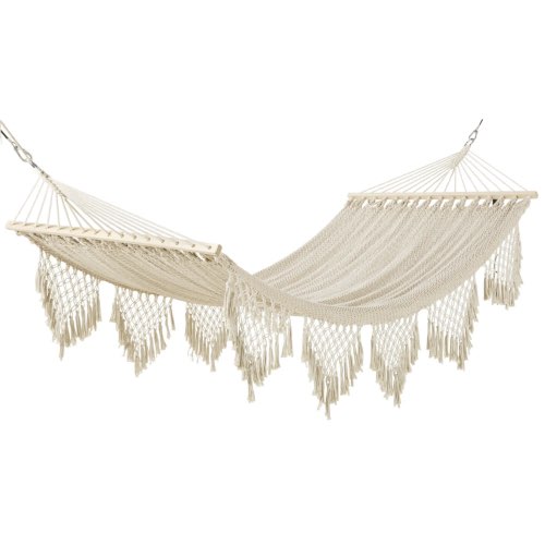 La matière la plus durable pour un hamac est généralement le polyester. Ce matériau synthétique est très résistant aux UV, aux déchirures et à l'humidité, ce qui le rend idéal pour un usage extérieur.