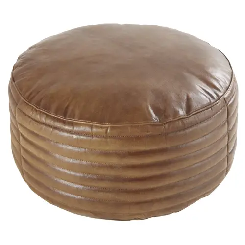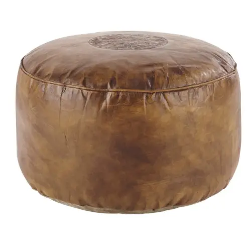 Références: pouf en cuir rond - Maisons du Monde, pouf rond en cuir avec sur-piqure, Maisons du Monde, fauteuil papillon - Maisons du Monde, fauteuil en cuir rétro - Maisons du Monde, fauteuil avec armature métal - Maisons du Monde