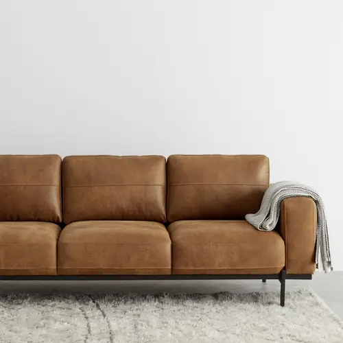 Références: canapé 2 places en cuir clair - Made, canapé 3 places en cuir - Made, fauteuil en cuir marocain + repose pied - Made, canapé en cuir naturel brun - Made, petit canapé en cuir - La Redoute