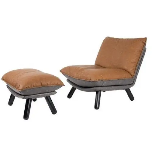 Références: repose pied papillon - La Redoute, repose pied en cuir - La Redoute, pouf en coton et cuir - La Redoute, fauteuil cannage et nubuck - La Redoute, fauteuil rétro en cuir - La Redoute