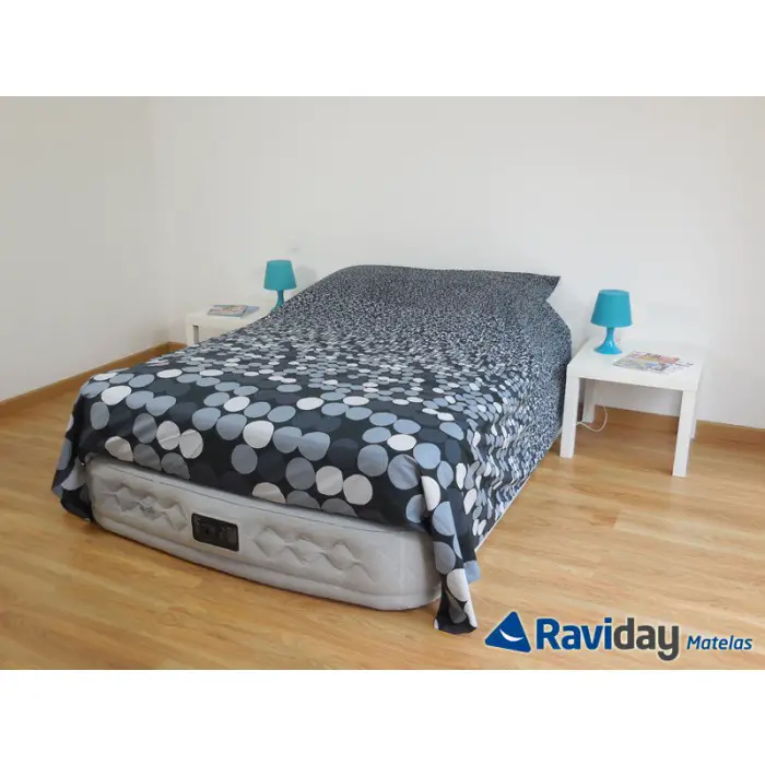 La technologie actuelle permet aussi de palier aux galères liées au matelas gonflable. La première d’entre elles est le gonflage. En effet, certains matelas de chez Raviday proposent une pompe électrique intégrée. Autrement dit, vous n’aurez pas à pomper 10 minutes pour gonfler votre matelas. Bien au contraire. Quand il est question de matelas classiques, on parle généralement des diverses qualités techniques que le matelas vous propose. On peut en faire de même avec leurs homologues pneumatiques. Prenons l’exemple du matelas Suprem Bed Intex constitué d’un sommier et d’un matelas ce qui permet de border le matelas gonflable comme un vrai lit, un confort non négligeable pour passer une bonne nuit de sommeil. Il y a aussi le matelas Premair Intex qui est équipé d’un boitier de commande. Cela vous permet de régler la fermeté du lit et de recharger un smartphone via USB. Cette dernière fonctionnalité est très intéressante si vous faites comme moi et que vous lisez beaucoup sur tablette ou liseuse avant de dormir ou si vous rechargez votre smartphone la nuit quand vous dormez.