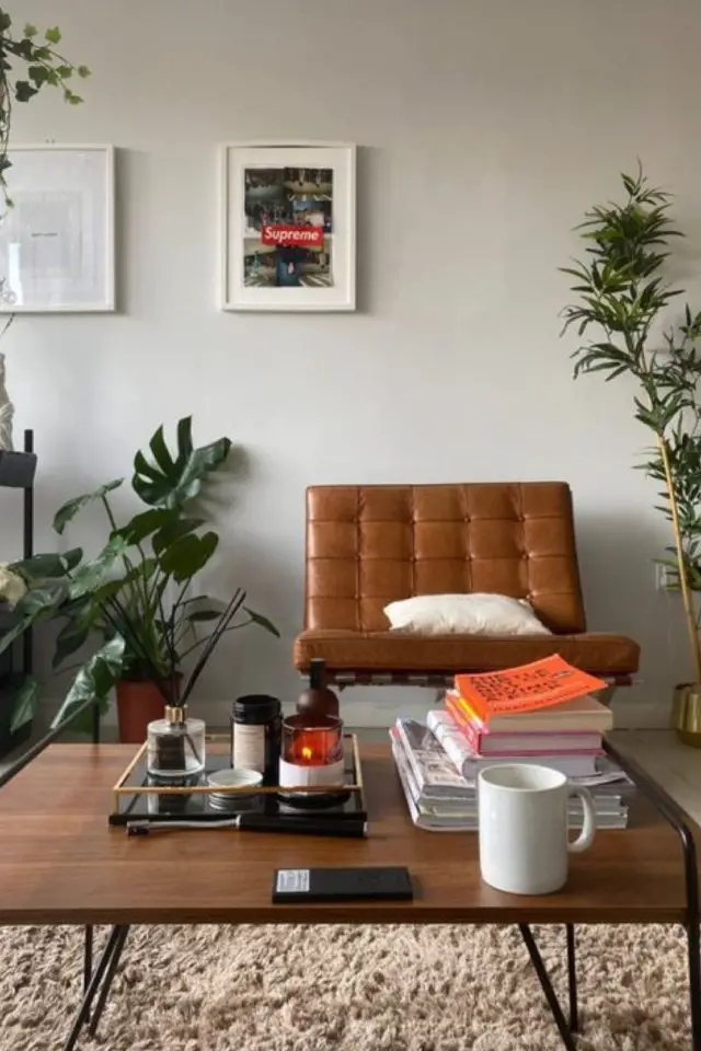 Niveau matériaux, vous avez l’embarras du choix pour votre table basse. Je pourrais consacré une dizaine d’articles uniquement sur les tables en bois. Le choix est vraiment vaste. Les tables en bois justement sont chaleureuses et authentiques, notamment quand le bois est naturel, juste protégé par une couche de vernis. On va retrouver les tables en bois dans les déco scandinaves évidemment, mais aussi dans les intérieurs tropicaux avec une table en rotin ou en osier tressé. Le bois se retrouve dans les intérieurs naturels, classiques même bohèmes. Toujours dans l’idée de retour aux sources, à des valeurs nobles. Sur la table basse, le bois peut aussi être peint. C’est top pour la recup’ ou pour ne pas avoir à acheter une nouvelle table. Idéal donc pour les petits budgets et les bricoleurs!Plus raffiné ou plus design, on peut penser à la table en verre. Visuellement, la transparence est intéressante à travailler. On peut par exemple mettre l’accent sur le tapis qui se trouve sous la table et que l’on verra grâce au verre. Il faut juste être attentif, la verre se raye facilement.Si vous aimez les intérieurs industriels par exemple, on peut imaginer une table en bois associé au métal. On voit aussi de plus en plus de tables basses en métal dans des styles plus contemporains. Certains modèles invitent au voyage. D’autres en revanche seront plus graphiques et plus féminins.Bien entendu, certaines tables basses mixent différentes matières. L’idée est de retrouver ailleurs dans votre décoration ces matières pour créer une certaine harmonie.