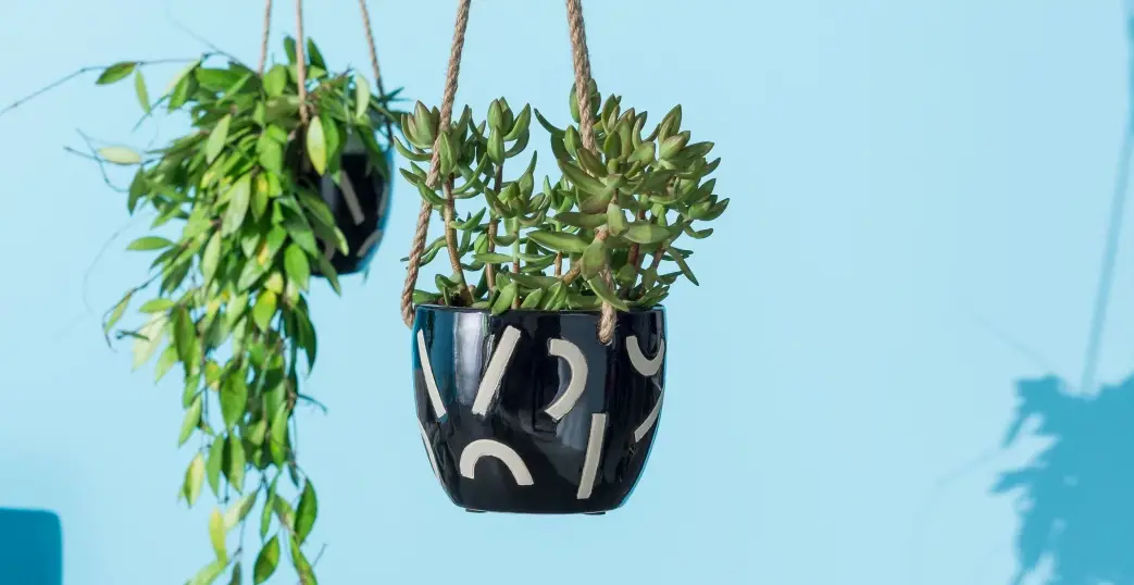 Si vous souhaitez apporter un peu de contraste dans votre décoration, les cache-pots peuvent jouer un rôle. Si vos murs sont blancs par exemple, une suspension noir agrémentée d'une plante verte créera un contraste harmonieux et discret.