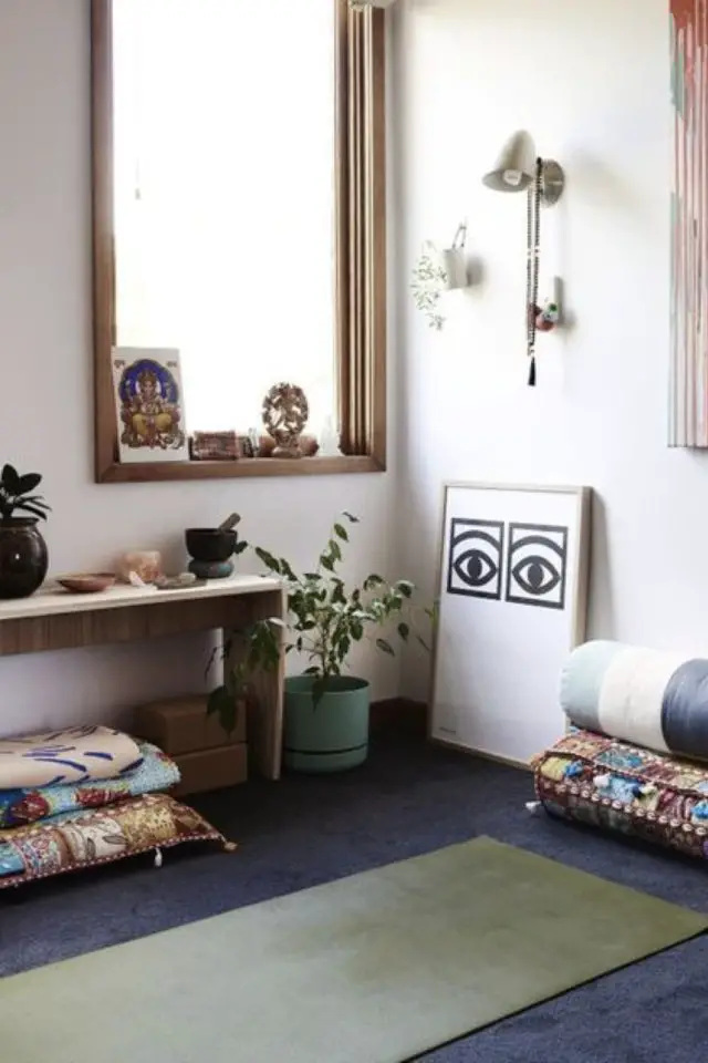 Comme dans tout le reste de la maison, la déco de votre coin de méditation doit être en adéquation avec votre personnalité. Certains se sentiront à l'aise dans un espace "très" décoré dans un style bohème. D'autres aimeront une déco plus sobre avec un autel composé d'encens, de bougies et pourquoi pas d'une statuette de Bouddha. Certains se sentiront plus à l'aise dans un univers verdoyant avec des plantes pour se recentrer sur ce qui est important. Surtout, ce qui est à garder en tête quant à la décoration de votre espace de méditation, c'est qu'elle ne doit pas nuire à votre travail méditatif. Si vous passez plus de temps à regarder votre déco, c'est qu'il y a un truc qui cloche!