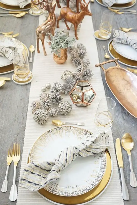 Je le disais en premier point de cet article quand je parlais de déco de table lumineuse, l'or et le blanc sont deux couleurs qui se marient à merveille et qui sont synonyme de fête. Ce type de décoration peut donc être utilisé aussi bien pour le réveillon de Noël que pour le réveillon de la nouvelle année. Il y a une idée de chic, d'abondance qui se dégage de ces déco de table.