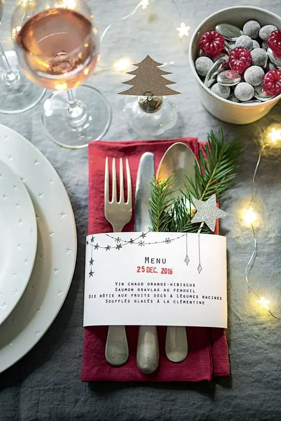Avec la tendance scandinave et le hygge, l'authenticité plait beaucoup. Et on peut la retrouver dans la décoration de la table pour les fêtes de fin d'année. Pour créer ce type de déco, on partira plus sur du rouge, du blanc, du vert. On trouvera des boules de noël, des guirlandes, des branches de gui, de houx ou de sapin.