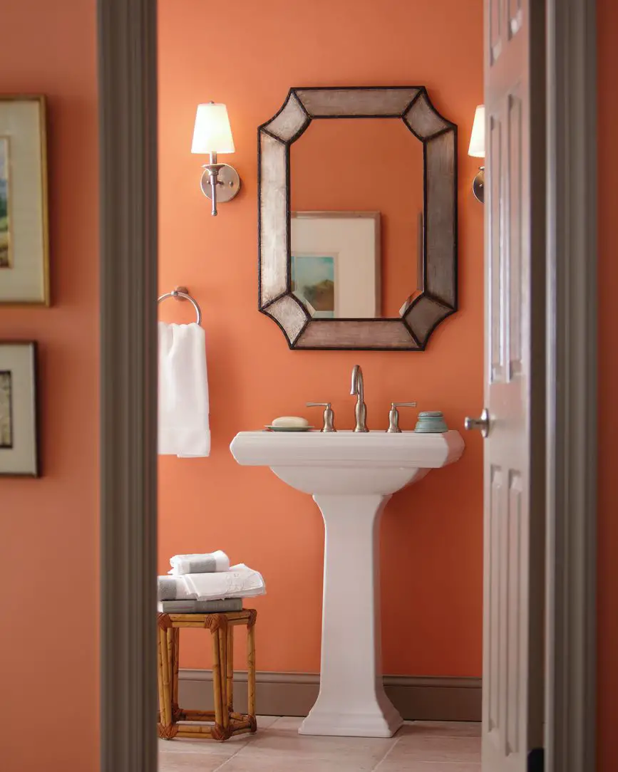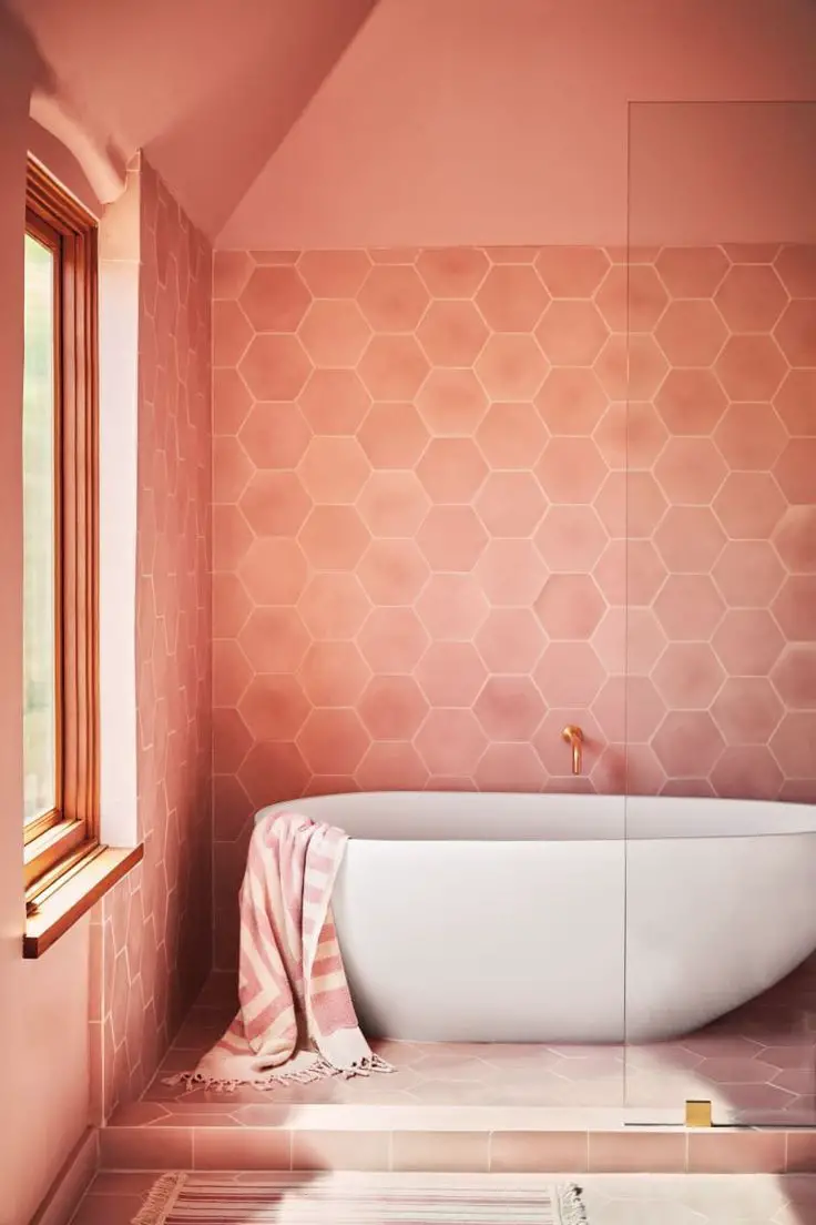 Comment éviter un effet trop girly dans la salle de bain avec du corail?