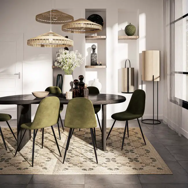 Tout comme le tapis, il y a des chaises qui sont accessibles financièrement. Et parfois ce changement suffit pour créer le nouveauté autour de la table de la salle à manger. Pour faire des économies et trouver des assises originales rien de tel que les brocantes. Même si ces dernières années, la chine a connu un certain essor, il est encore possible de faire de jolies trouvailles. N'hésitez pas non plus à jouer la différence avec plusieurs types de chaises et fauteuils.