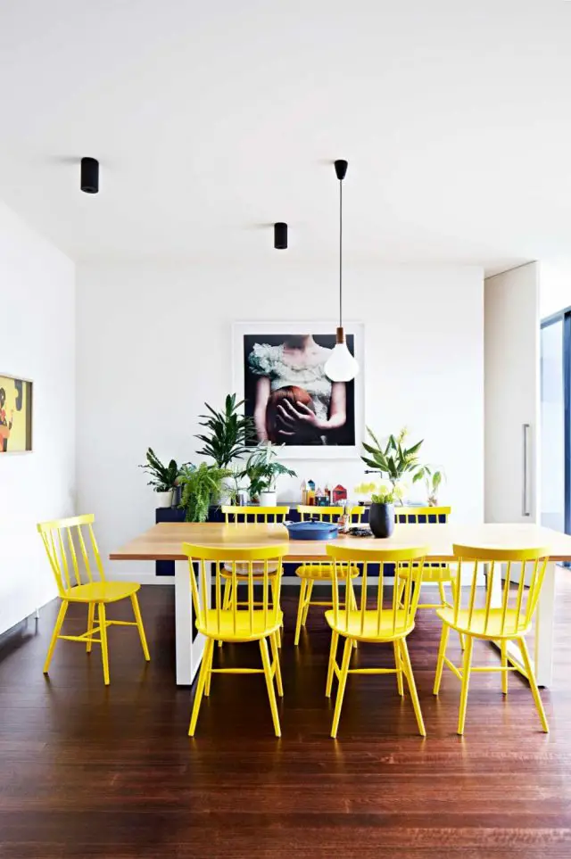 Après les contraintes du niveau de l'aménagement, on va s'intéresser à la déco. La salle à manger est par essence une pièce de vie, donc l'idée c'est de la rendre conviviale. Même minimaliste, une salle à manger peut-être conviviale. Qu'est-ce qui fait que vous vous sentez bien dans certains endroits? Le bois par exemple est chaleureux. On peut aussi aimer la couleur par petite touche. Est-ce que pour vous la convivialité passe par des sièges confortables autour de la table? Un joli bouquet de fleurs ou des plantes vertes? Le sentiment de bien-être de votre pièce se ressentira sur l'ambiance de vos repas. Si la pièce est agréable, les repas le seront sans aucun doute! (A moins que ce soit avec votre belle-mère et qu'elle ne peut pas vous sentir, la décoration ne sera pas magique pour autant!)