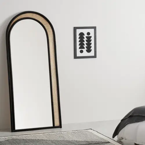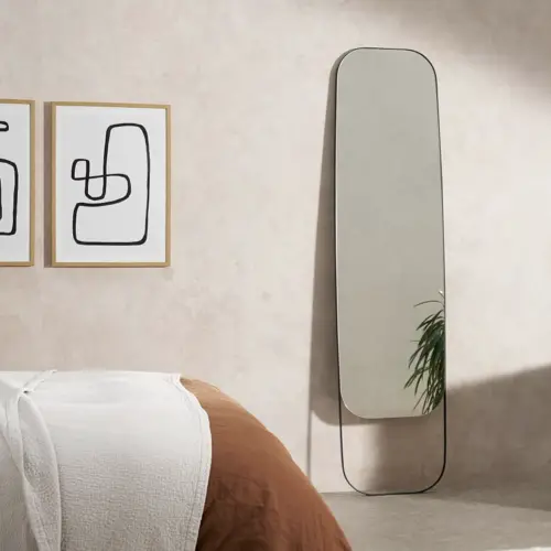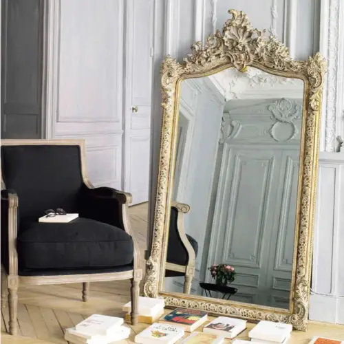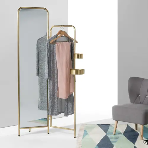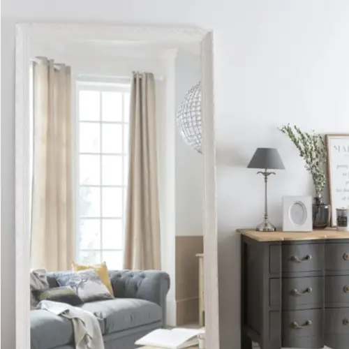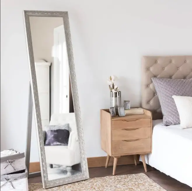 En parlant de fonctionnalité, on a la solution du miroir sur pied ou psyché que l'on pose près de l'armoire. Contrairement à la première solution, ce qui est intéressant ici, c'est que ce type de miroirs est bien plus stable. On n'a beaucoup moins de crainte quand le pied vient buter dedans. Et j'aime beaucoup la signification mythologique de Psyché, princesse très jolie qui fera tombé amoureux Eros.
