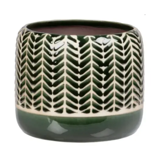 - Cache-pot en terre cuite beige et vert kaki - Maisons du Monde