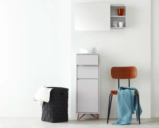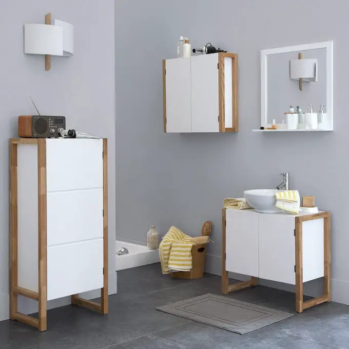 Pour terminer notre tour des rangements d'appoint pour la salle de bain, il y a d'autres solutions qui peuvent compléter votre aménagement, comme les colonnes de salle de bain. Elles ont la caractéristique d'être peu large et pouvoir se glisser entre des meubles déjà existant. Dans le même esprit, on a les demies colonnes qui offre du rangement sans alourdir la pièce. C'est une solution intéressante quand on a une petite salle de bain. Je suis moins fan des chiffonniers ou des meubles qui ressemblent à des commodes dans la salle de bain. Cela s'explique par le taux d'humidité inhérent de la pièce. Et si un jour vous avez un soucis d'aération ou d'humidité dans votre pièce d'eau, ce que vous aurez stocké dans votre meuble pourrait sentir l'humidité ou moisir dans le pire des cas.