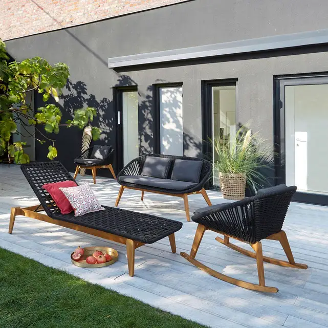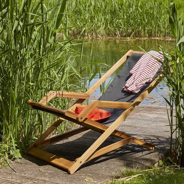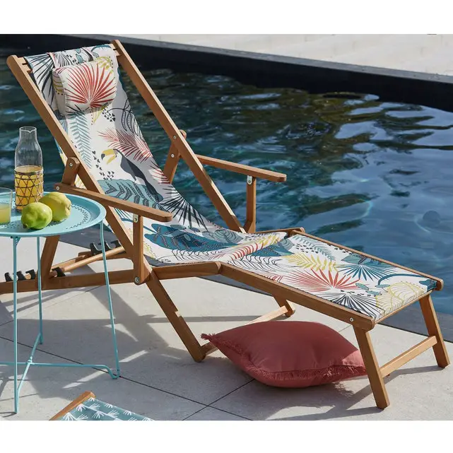 Niveau déco, ce qui me plait, c'est que la chilienne, comme le transat me rappellent mon enfance. Les chaises que l'on sortait de la remise dès qu'il y avait du soleil, celles qu'on transportait à la plage. Une toile colorée, qui sèche facilement. Et l'armature en bois est toujours d'actualité pour une déco naturelle même en extérieur.