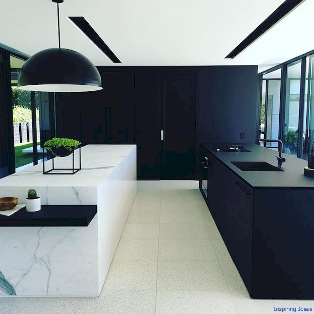 En parlant de raffinement, le noir s'associe très bien avec le marbre. Et ce qui est intéressant avec ce matériaux c'est qu'il est génial dans une cuisine. Il est robuste, il s'entretient aussi facilement. Alors tu vas me dire: "Ouais mais Julie, je ne suis pas riche à million, je n'ai pas les moyens de me payer du marbre!" C'est certain qu'un plan de travail en marbre coute plus cher qu'un plan de travail en stratifié. En revanche, ce matériaux noble sera une touche singulière dans votre décoration de cuisine.