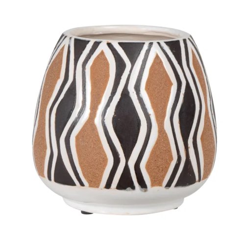 - Cache-pot en grès marron, blanc et noir - Maisons du Monde