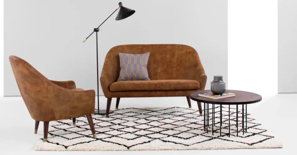 Retour à l'authenticité avec les tapis tissés à la main. Vous le verrez dans la suite de cet article, je vous propose différents modèles de tapis avec des motifs géométriques. Celui-là me plait parce qu'il est fin, cela donne une autre dimension à votre espace. On garde la notion de confort en revanche, elle se fait plus discrète.