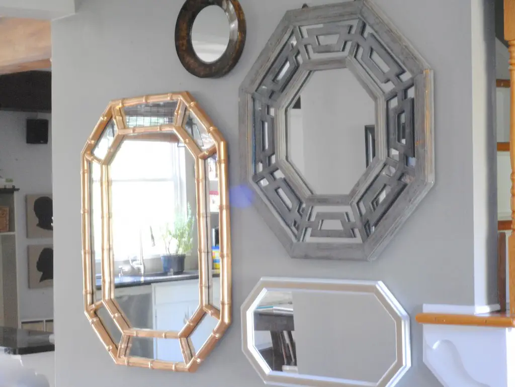 Je l'ai évoqué rapidement dans la première solution, au dessus d'un meuble, le miroir n'est pas nécessairement seule à décorer le mur. On peut l'associer à des cadres, des photos, mais aussi à d'autres miroirs. Le risque ici c'est de "surcharger" le mur avec trop de cadres / miroirs. Généralement au dessus d'une console, on a trois miroirs moyens. En mettre plus c'est prendre le risque de créer une décoration trop lourde.