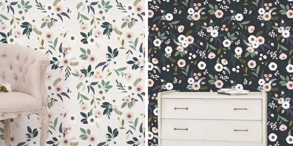 Et pour terminer cette sélection, je vous propose un dernier papier peint avec des fleurs un peu plus grosses que le liberty. Je suis fan de ce papier qui est très poétique et doux. Le coloris foncé est complètement tendance et j'aime le contraste que l'on peut créer avec du mobilier clair ou blanc.