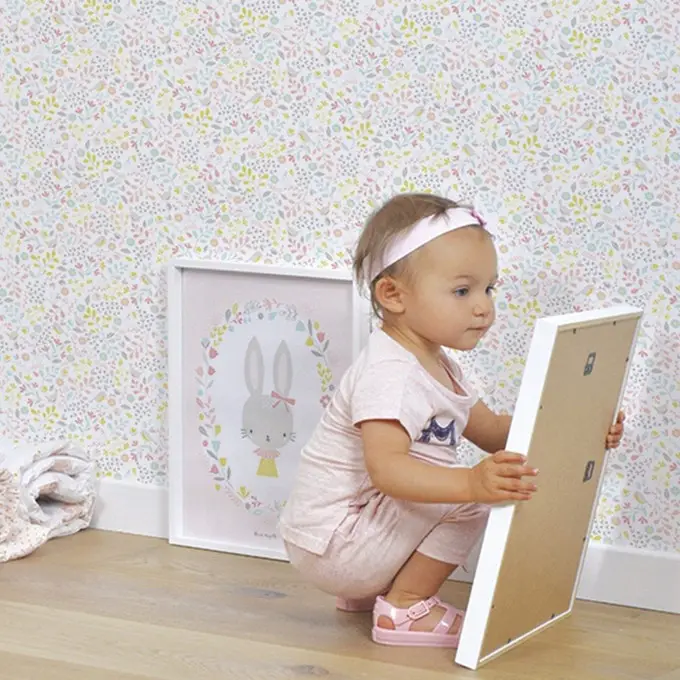 Le classique liberty. Même si ce motif floral est un peu moins mis en avant qu'il y a quelques années, il reste une valeur sûre pour la chambre des plus jeunes. La douceur est inhérente à ce type de papier peint. Le liberty s'adapte aux couleurs tendances. C'est comme cela qu'on en trouve dans les teintes pastels. Un concentré de tendresse sur les murs de la chambre!