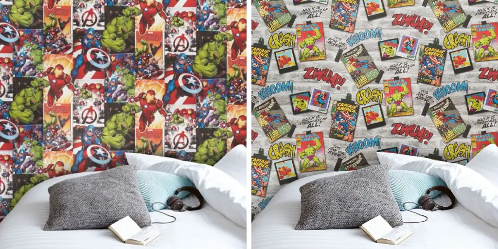 Moins tendres mais d'actualité: les super héros sortis tut droit des Comics américains. Les enfants aiment les films, ils apprécieront aussi de retrouver sur les murs de leur chambre les super héros dont ils sont fans. Il y a pas mal de choix quant à la présentation du super héros, je trouve ça intéressant.