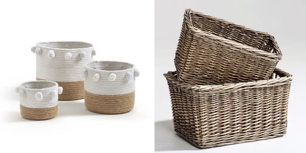 Des paniers tressés en rotin pour organiser la salle de bain