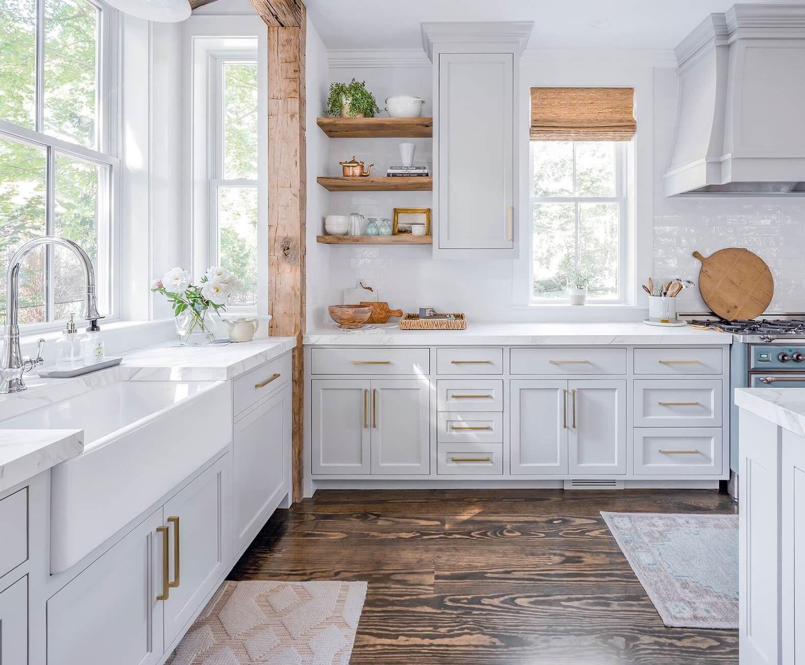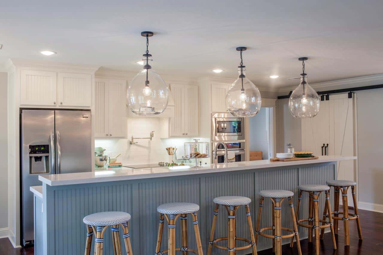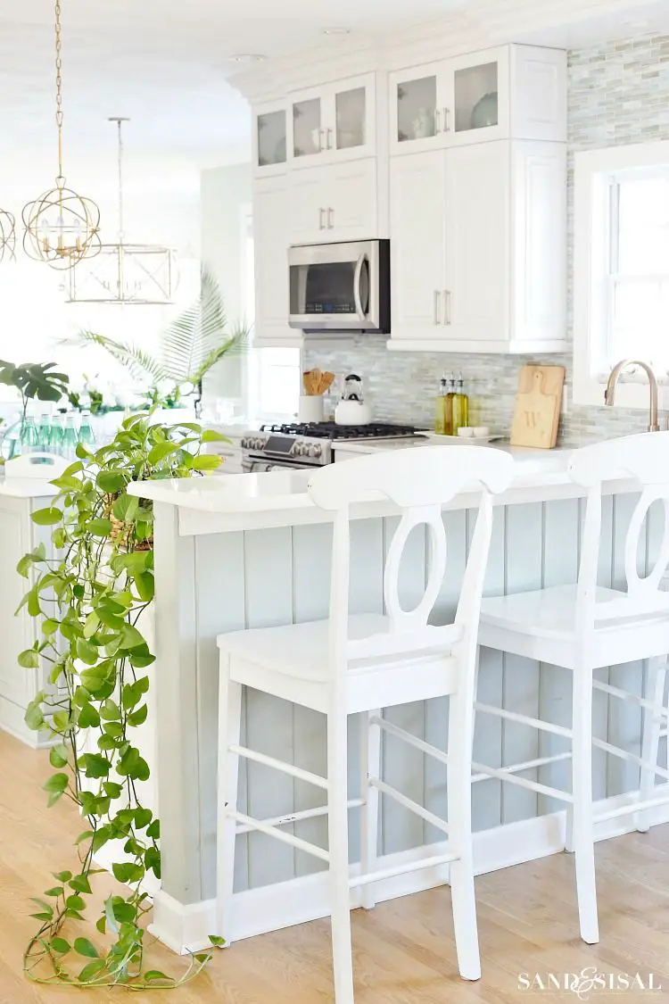 Qu'elles soient blanches, bleues ou grises, les façades de cuisine bord de mer ne sont pas lisses et épurées comme c'est la tendance depuis plusieurs années. Elles ne sont pas non plus surchargées de détails. Seules quelques moulures permettent de donner du relief aux meubles de cuisine. C'est un petit détail qui va donner plus de charme à votre pièce.