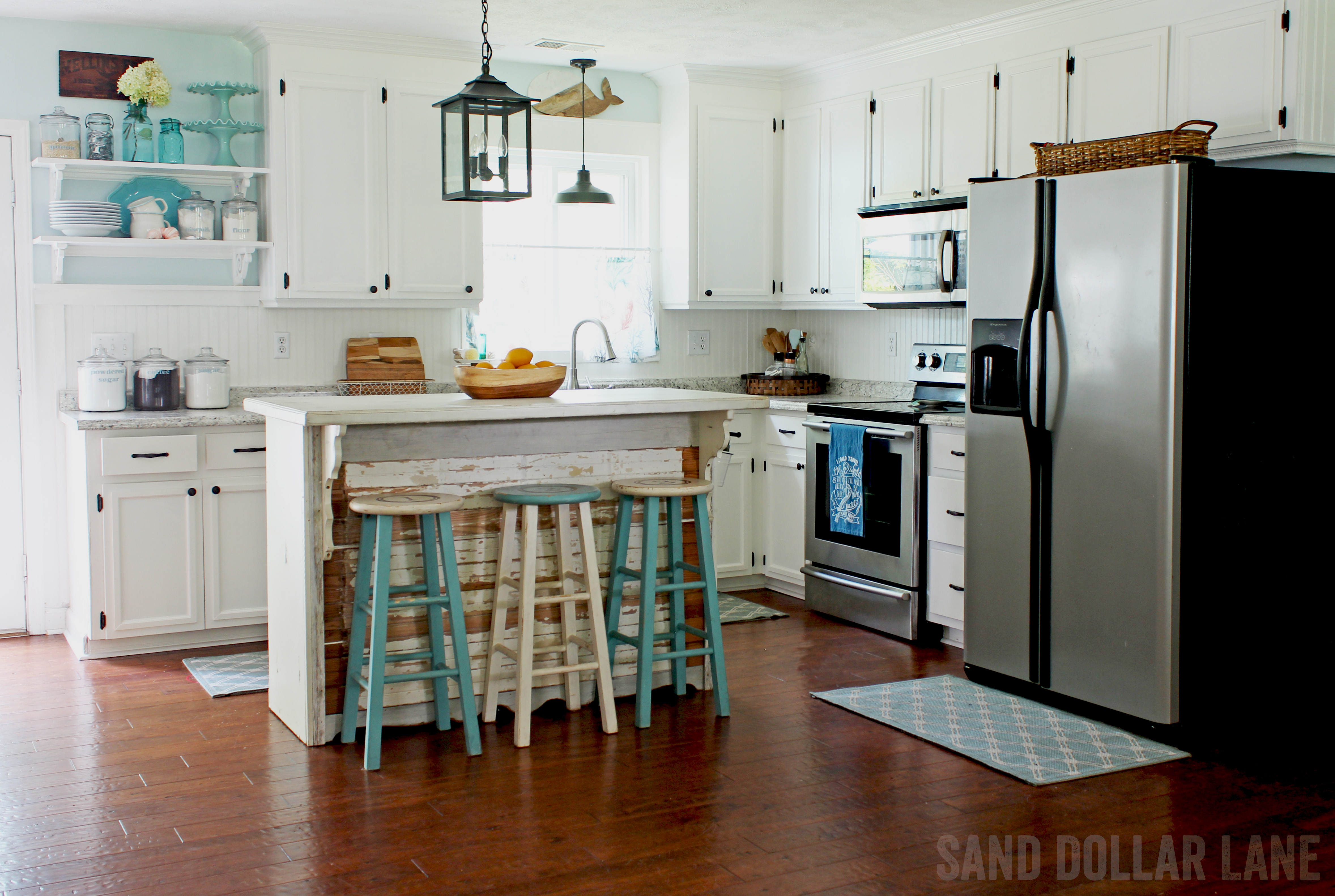 La cuisine, ce n'est pas le premier endroit de la maison que je décorerais dans un style bord de mer. Pourquoi? Parce que j'aime les cuisines pratiques et fonctionnelles et j'aurais tendance à miser sur le charme des matériaux plutôt que sur la décoration. Mais je sais que certain(e)s d'entre vous aiment décorer la cuisine et du coup, pourquoi pas créer une ambiance qui rappelle les vacances dans cette pièce?!