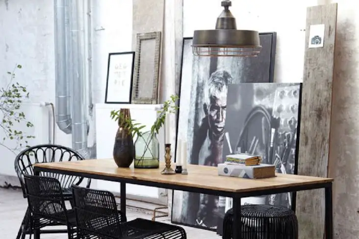 Et si vous cherchez à créer un sentiment encore plus authentique et brut de décoffrage dans votre salle à manger, pourquoi pas opter pour de la récup' et de l'industriel? Récupérez des planches, conservez les effets du temps sur le bois, ajoutez des pieds de tables style industriel et le tour est joué! Pour les chaises autour de la table on peut penser aussi à de la récup' ou des chaises, bancs et tabourets industriels.