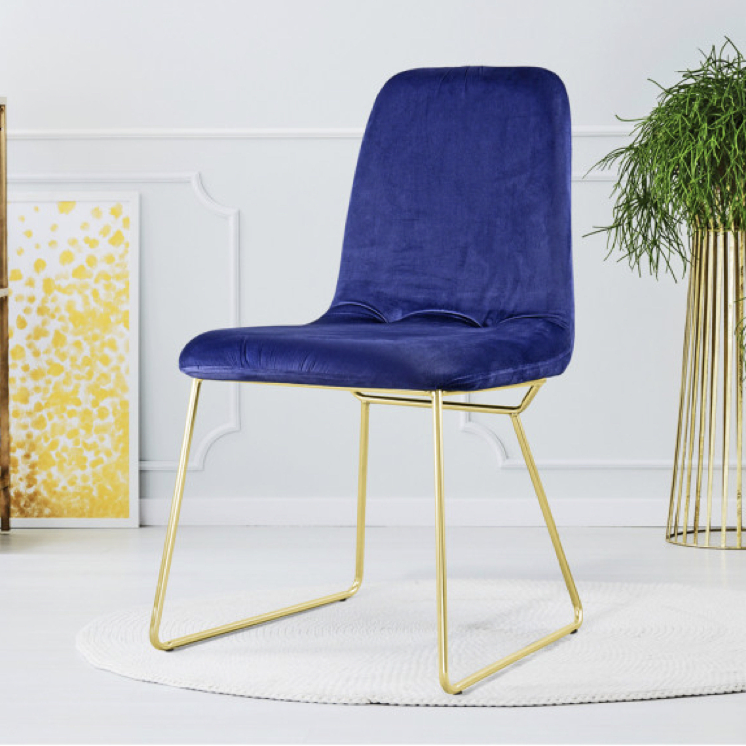 Une chaise en velours bleu - intemporel