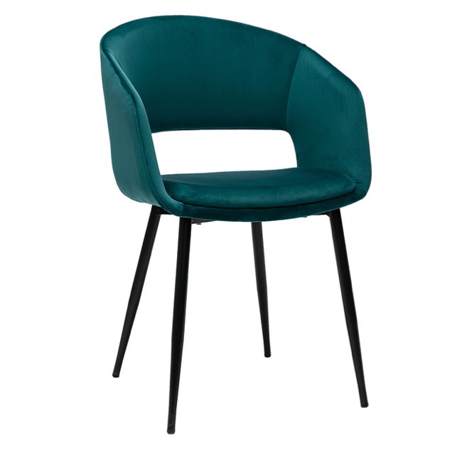 Chaise design en tissu velours bleu pétrole et métal noir - Miliboo