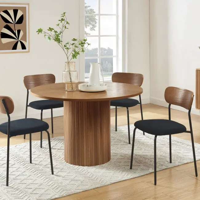 Le noir pose des problèmes à beaucoup de monde. Pas que les gens n'aiment pas cette couleur mais elle semble plus délicate à intégrer dans la déco en partie à cause de son symbolisme parfois un peu lugubre. J'aime le noir en matière de mode ou en matière de design d'intérieur donc pour moi c'est assez facile de l'utiliser. Le noir est raffiné et élégant. Il apporte une sorte de subtilité dans la déco, il sert d'ailleurs beaucoup pour rehausser une harmonie de couleurs un peu fade. C'est comme un point d'orgue contemporain. Faire le choix de chaises en velours noir autour de la table vous permettra de mettre en valeur votre décoration existante et apportera une touche moderne à la salle à manger.