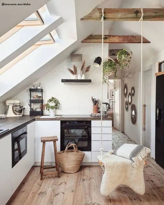 Après vous avoir parlé des claustras en long, en large et en travers, j'ai eu envie et besoin de vous parler d'autre chose et mon dévolu s'est porté sur les combles. J'ai déjà écrit quelques articles à ce propos ces dernières années, néanmoins, j'ai eu envie d'approfondir un peu plus le sujet, de prendre le temps de me poser des questions à propos de cet espace si singulier. Aménager les combles ce n'est pas comme changer le papier peint du séjour. Cela demande de la réflexion, de la recherche pour optimiser au mieux l'espace. Ce n'est pas juste une question de gain de place, c'est aussi une question de bien vivre. L'espace étant souvent restreint à cause de la mansarde, il faut parfois faire preuve d'ingéniosité. Et dans cet article, où il est question d'aménager une cuisine sous les combles, l'adresse et l'astuce vous seront d'une grande aide!