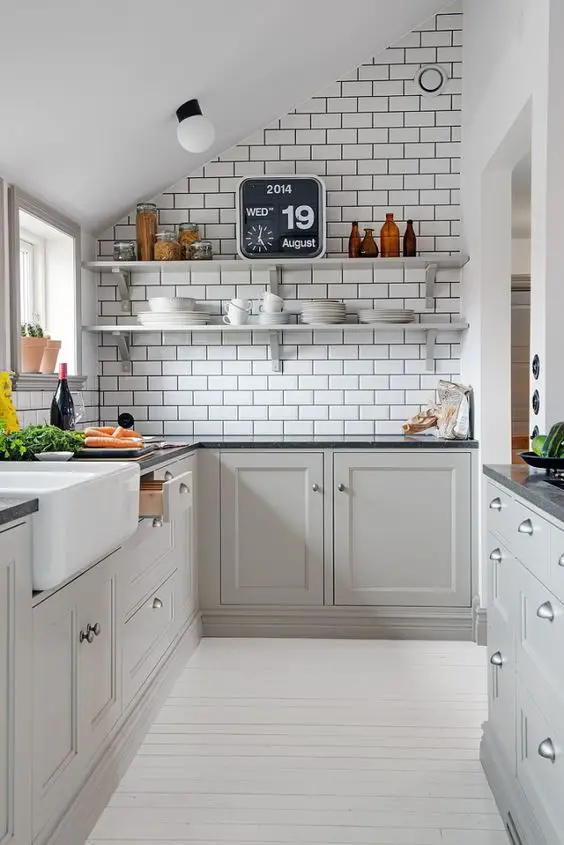 - Un joli carrelage en guise de crédence et des plantes suspendues pour décorer sans perdre de place (Ce n'est pas parce que votre cuisine est petite qu'elle doit être moche!)