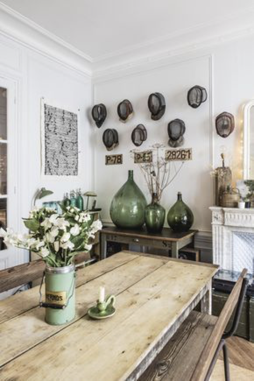 Cinquième objet que vous pouvez chiner en brocante pour décorer la maison, c'est de la déco et c'est une Dame Jeanne. Ce vase vintage a signé son grand retour dans l'univers de la décoration. On aime sa forme qui n'est pas lisse, ses couleurs translucides. Mais surtout, on aime la facilité qu'a la Dame Jeanne à s'inviter dans tous les styles déco ou presque. On va évidemment la trouver dans un intérieur classique / romantique mais elle a aussi sa place dans une décoration slow par exemple.