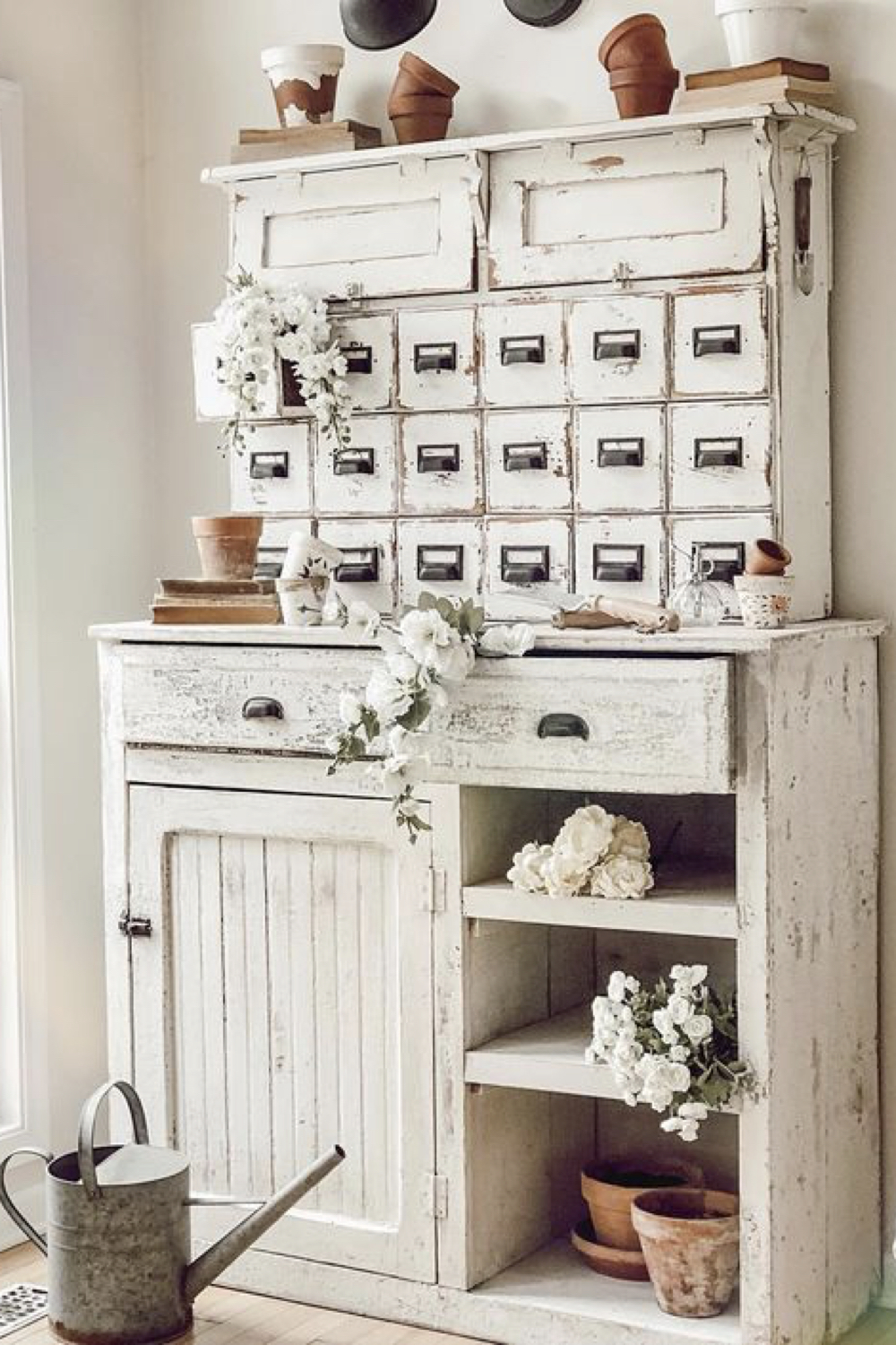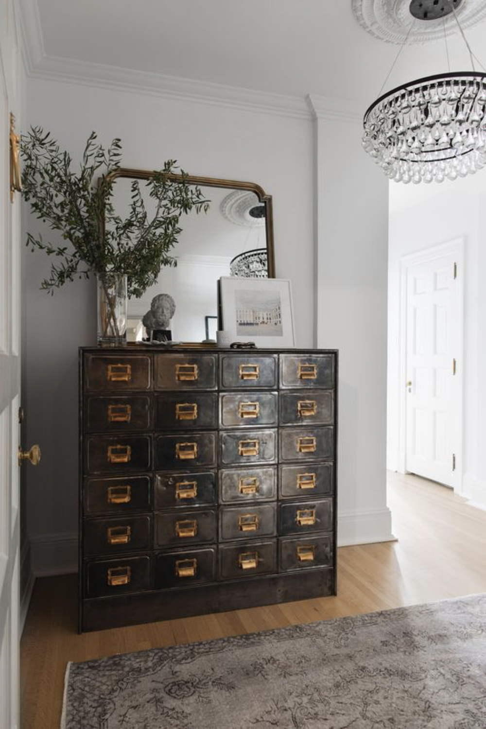 Même si actuellement j'ai adopté un mode de vie très minimaliste, avant, j'étais très bordélique et j'étais très entourée d'objets. Il y a deux types de meubles qui ont une place particulière dans mon coeur, ce sont les casiers d'imprimeurs et les meubles d'apothicaire. Ce sont deux catégories de meubles qu'on peut chiner si on en trouve... Parce que c'est quand même plus rare que les miroirs par exemple. C'est super pratique pour ranger et organiser la foule de petits objets qu'on a au quotidien. Et avouons-le, ça a quand même beaucoup de cachet!