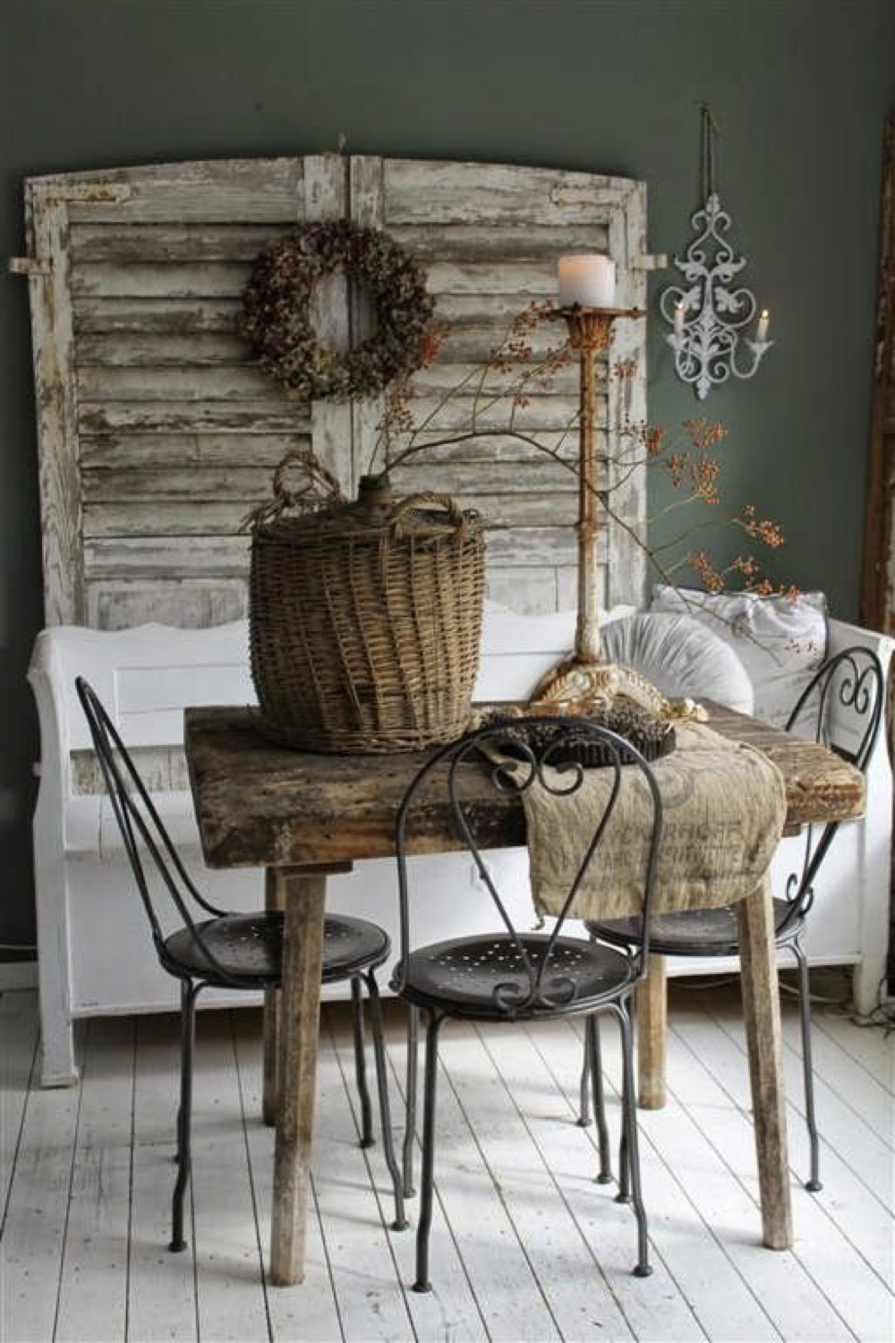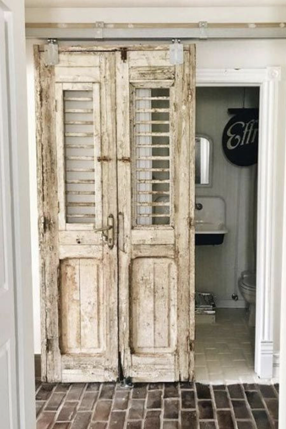 Comme les valises dont je parlais plus haut, les portes anciennes et volets sont de grands classiques quand on aime chiner et arpenter les brocantes. Ce qui me plait avec ce type d'objets c'est qu'il est aisé de leur donner une seconde-vie parfois bien différente de la première. On peut transformer d'anciennes portes en porte coulissantes - un mélange passé / présent, ancien / moderne. On peut aussi s'en servir comme tête de lit. Les possibilités sont nombreuses!