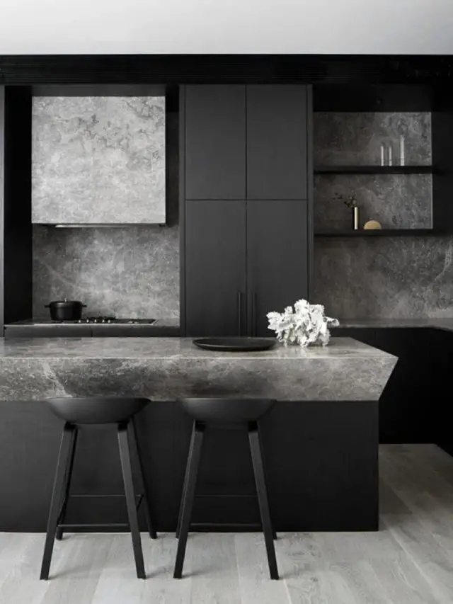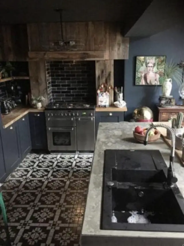 Et en parlant de meubles, les cuisines aux façades noires peuvent être une bonne base pour créer un style rock. Je vous conseille d'éviter le too much noir et de jouer sur les contrastes. Les meubles de cuisine noirs avec un plan de travail en bois clair par exemple et un joli carrelage mural blanc en guise de crédence. Pour conserver le style vintage, on peut très bien partir sur un carrelage métro qui aura plus de personnalité et d'histoire qu'un carrelage en 15 x 15 blanc. Pour la façade des meubles de cuisine, il n'y a pas un modèle type qui vous permettra de créer une ambiance rock. On peut aussi bien trouver des meubles de cuisines années 80 qui ont été peints que des meubles plus récents et plus minimalistes. On note tout de même que des teintes sourdes et mates sont plus fréquentes.