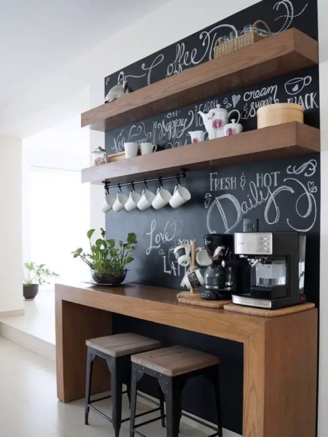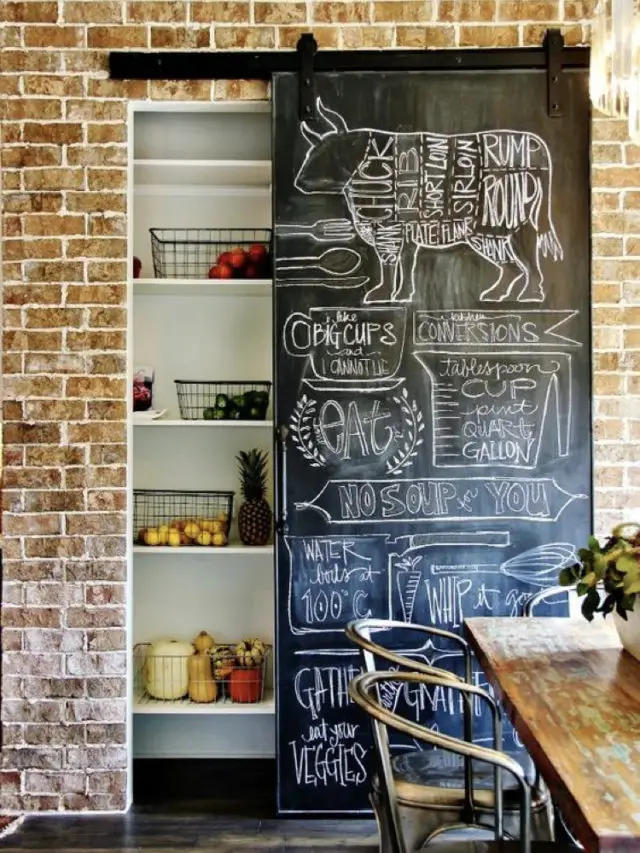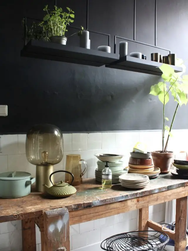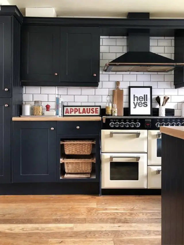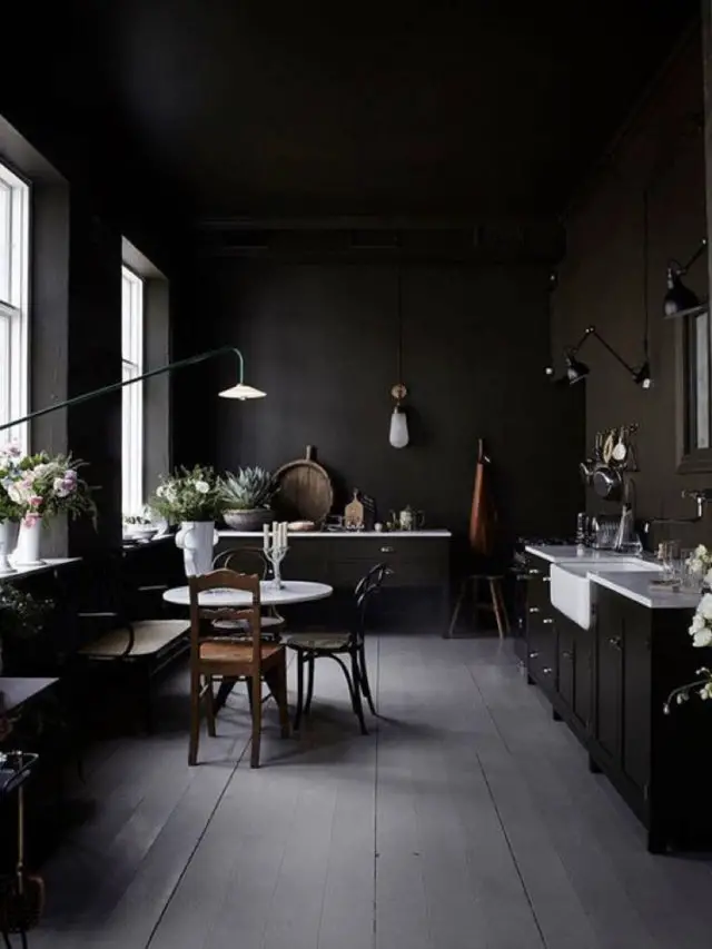 Il est nécessaire à mes yeux de faire un choix: soit on choisit de peindre les murs en noir, soit on part sur du mobilier noir. L'association des deux ne doit pas être facile à vivre notamment si vous avez une petite cuisine et / ou une cuisine qui a peu de luminosité naturelles. Ce qui me plait avec l'idée de peindre en noir les murs, c'est que ça coute sensiblement moins cher que de changer l'ensemble des meubles de cuisine. Vous pouvez, pourquoi pas, partir sur de la peinture ardoise pour faire des dessins et inscrire des messages aux allures rétro sur un pan de mur.