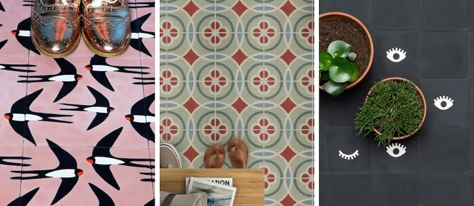 7. Carreau de ciment Bossa, Maison Bahya 8. Carreau de ciment écaille, Carodeco 9. Carreau ciment Skaï, Maison Bahya