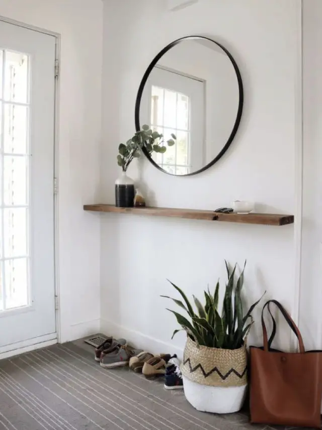 Le miroir est un accessoire déco qui sera un atout pour une entrée plus lumineuse. En plus de vous permettre de vous recoiffer avant de sortir, il reflette la lumière. On le pose donc sur le mur où il a plus de lumière / où les rayons du soleil tapent le plus. Si vous voulez exploiter à fond l'idée du miroir dans votre entrée, je vous conseille de lire mon article sur les 7 manières de décorer l'entrée à l'aide d'un miroir et si vous cherchez un grand miroir rond, je vous ai préparé une sélection de modèles par ici.