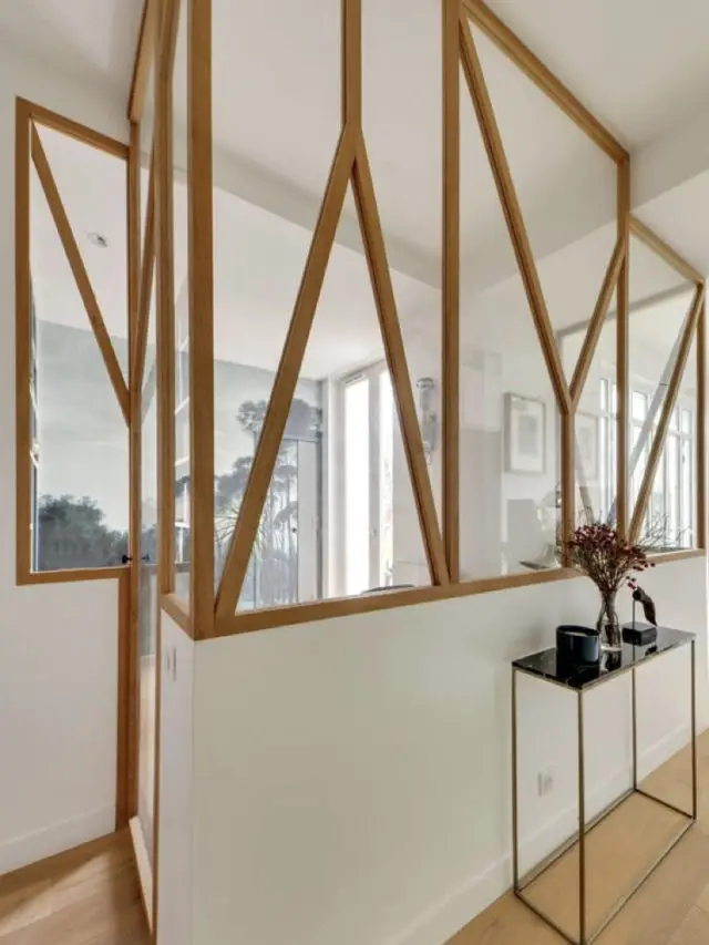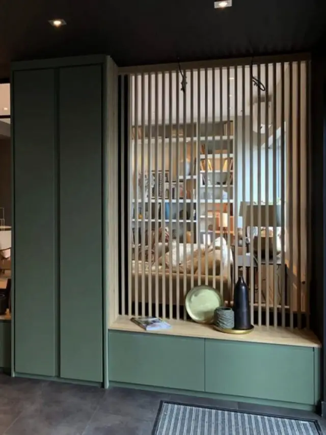 Si vous suivez ce blog régulièrement vous savez que j'ai déjà évoqué le sujet. J'ai traité l'utilisation des claustras dans toute la maison et donc aussi dans l'entrée. (Vous pouvez lire l'article ici) Les claustras intérieurs sont tout aussi déco que la verrière, c'est un autre style. En parlant de style, les claustras offrent bien plus de possibilités décoratives que la verrière qui est très typée indus'. Les claustras peuvent être en bois pour une décoration naturelle et chaleureuse. Ils peuvent être un mélange de cloison ajourée et d'étagères pour un peu plus de rangements. Ils peuvent aussi être en métal découpé au laser. Et là, les possibilités décoratives sont infinies. Les claustras vont laisser passer la lumière sans vitre comme les verrières. La protection au froid n'est donc pas la même. Si vous vivez en appartement, vous avez probablement moins de froid qui entre en même temps que vous que si vous vivez dans une maison. Au départ, les claustras sont des éléments extérieurs qui brisent la vue mais dans le cas des moucharabiehs par exemple ils peuvent aussi servir à faire courant d'air à l'intérieur (dans les pays chauds, c'est nécessaire!) Si on peut faire entrer l'air on peut aussi d'en protéger. Il suffit de changer l'orientation des lames par exemple. Normalement, un artisan spécialisé dans les claustras pourra vous conseiller au mieux quant au type de modèles adaptés à votre entrée et vos besoins.