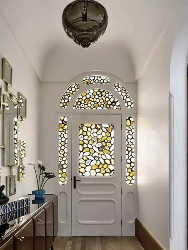 Enfin pour terminer cette partie où il est question d'améliorer les ouvertures sur l'extérieur pour plus de lumière à l'intérieur, on peut penser aux vitraux. C'est une solution très décorative et très originale. C'est parfait par exemple si vous souhaitez créer une ambiance classique chic dans votre entrée. J'aime le côté poétique du vitrail, l'apport de lumière colorée. Je trouve que c'est une source incroyable de bonne humeur.