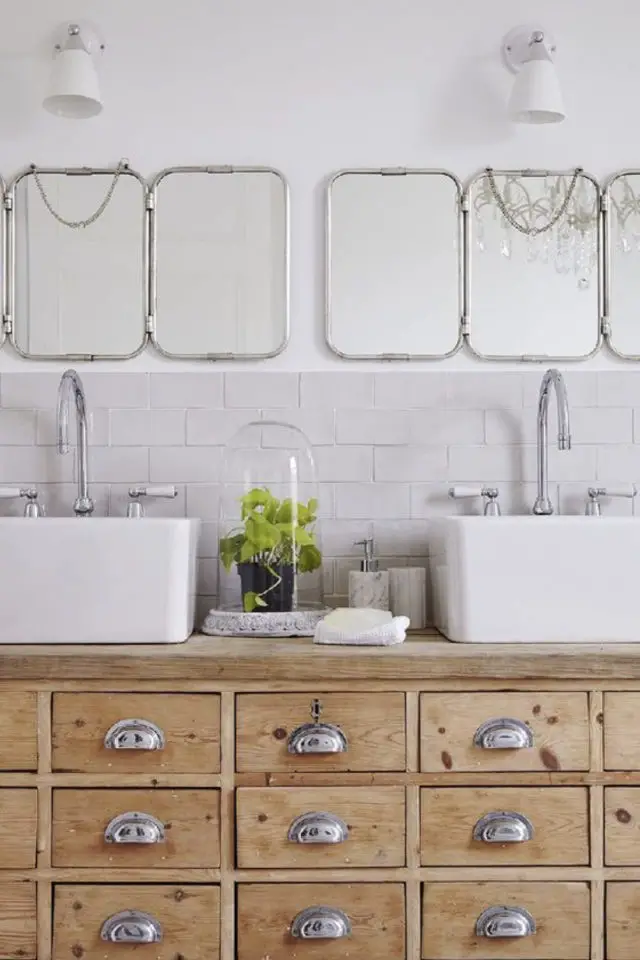 Vous pouvez opter pour un meuble aux allures baroques avec des moulures et des détails soignés (comme les poignées). La patine du meuble renforcera son côté classique et intemporel.