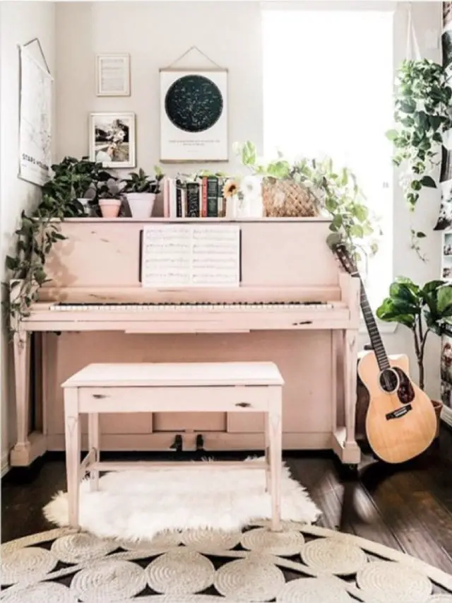Simple et classique, le piano en bois réchauffe la pièce. Si vous êtes adepte de la sobriété, c’est parfait.