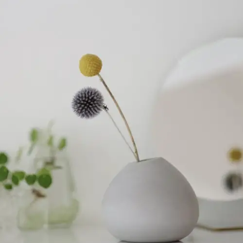 J'ai un coup de coeur pour les soliflores en béton de Gone's - une entreprise française basée à Lyon. J'aime la simplicité du béton. J'aime aussi le contraste de la douceur des fleurs avec le côté brut de la matière.