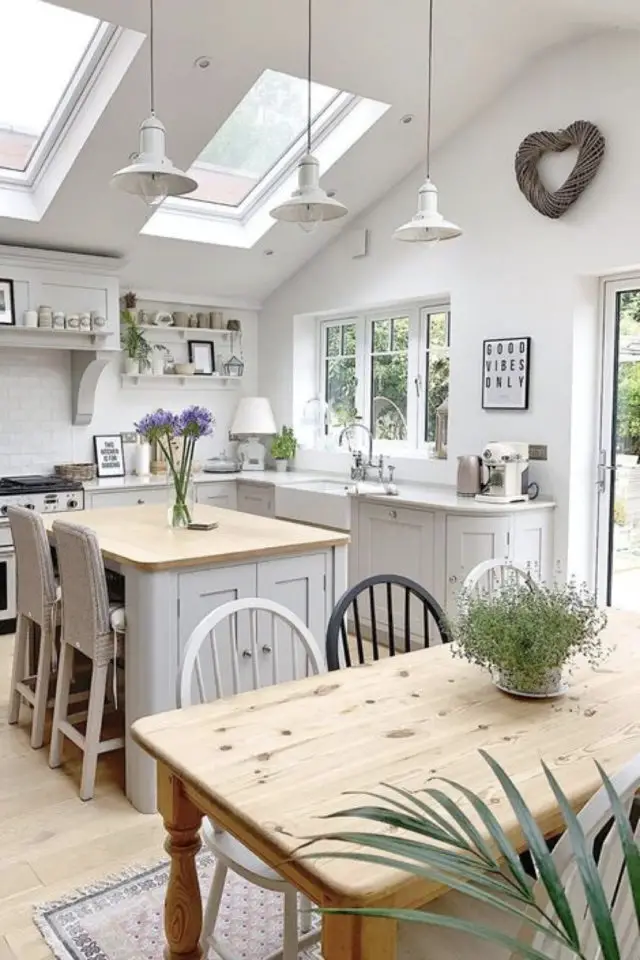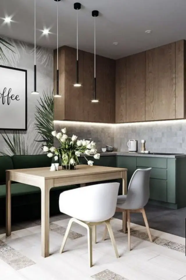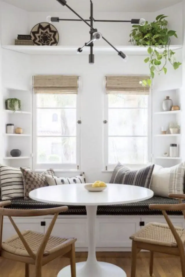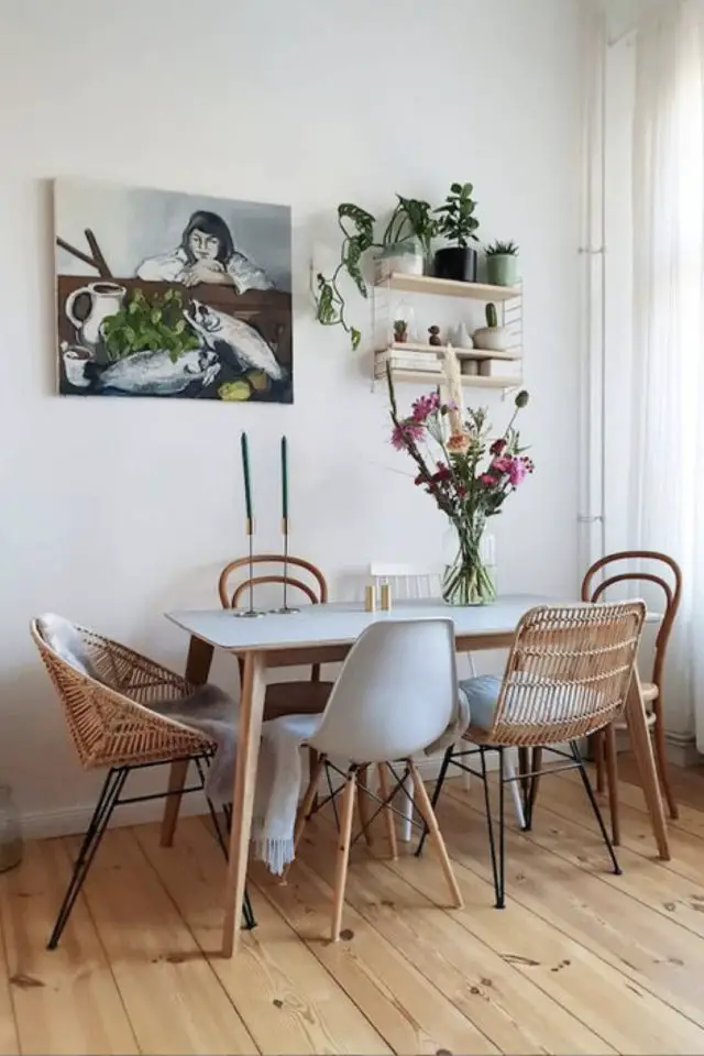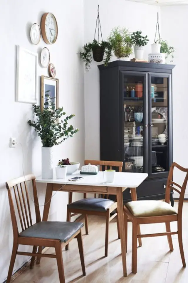 - Des chaises avec des tabourets (parfait pour les petits espaces)